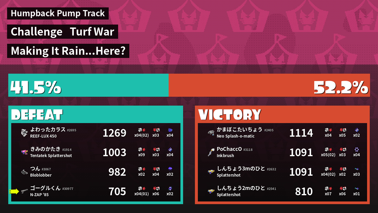 | Medals | #1 Home-Base Inker #1 Tacticooler User #2 Overall Splatter | ||