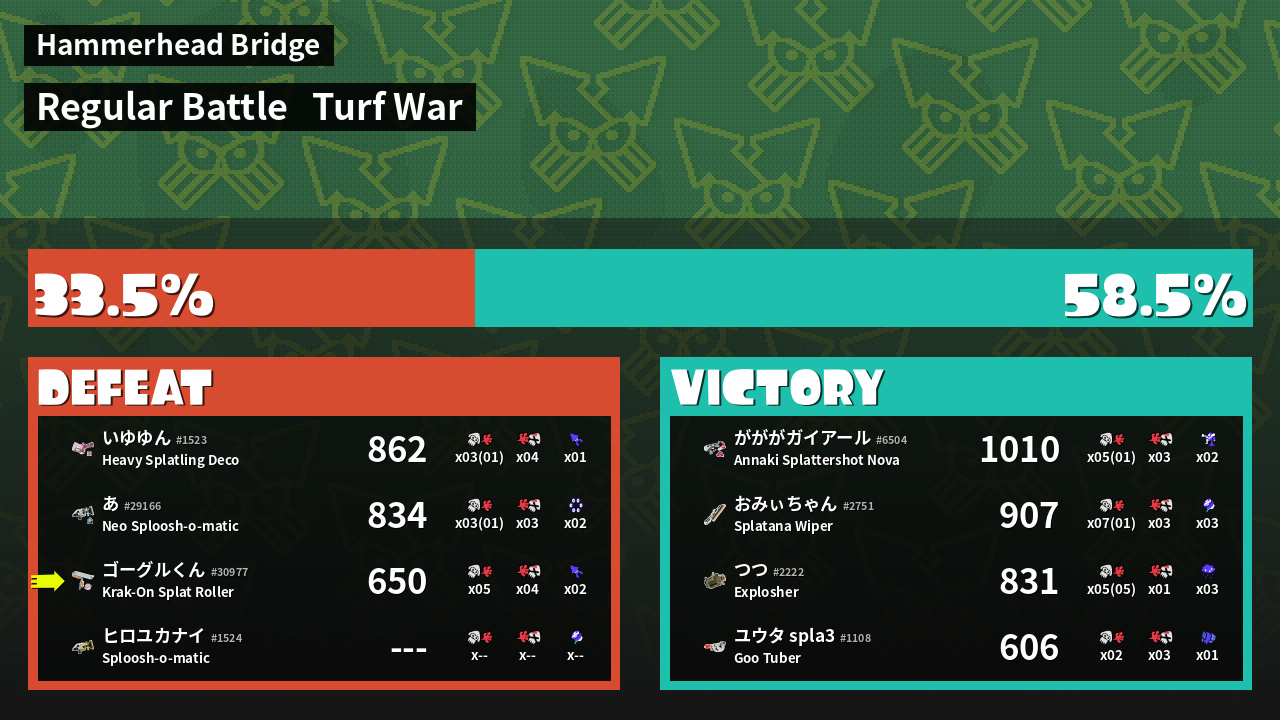 | Mode | Turf War - Regular Battle | ||