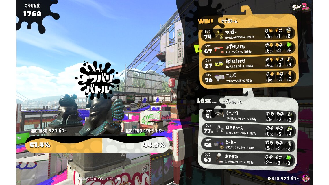 | Their team's splatfest power | 1,760 | |||||||||||||||||||||||||||||||||||||