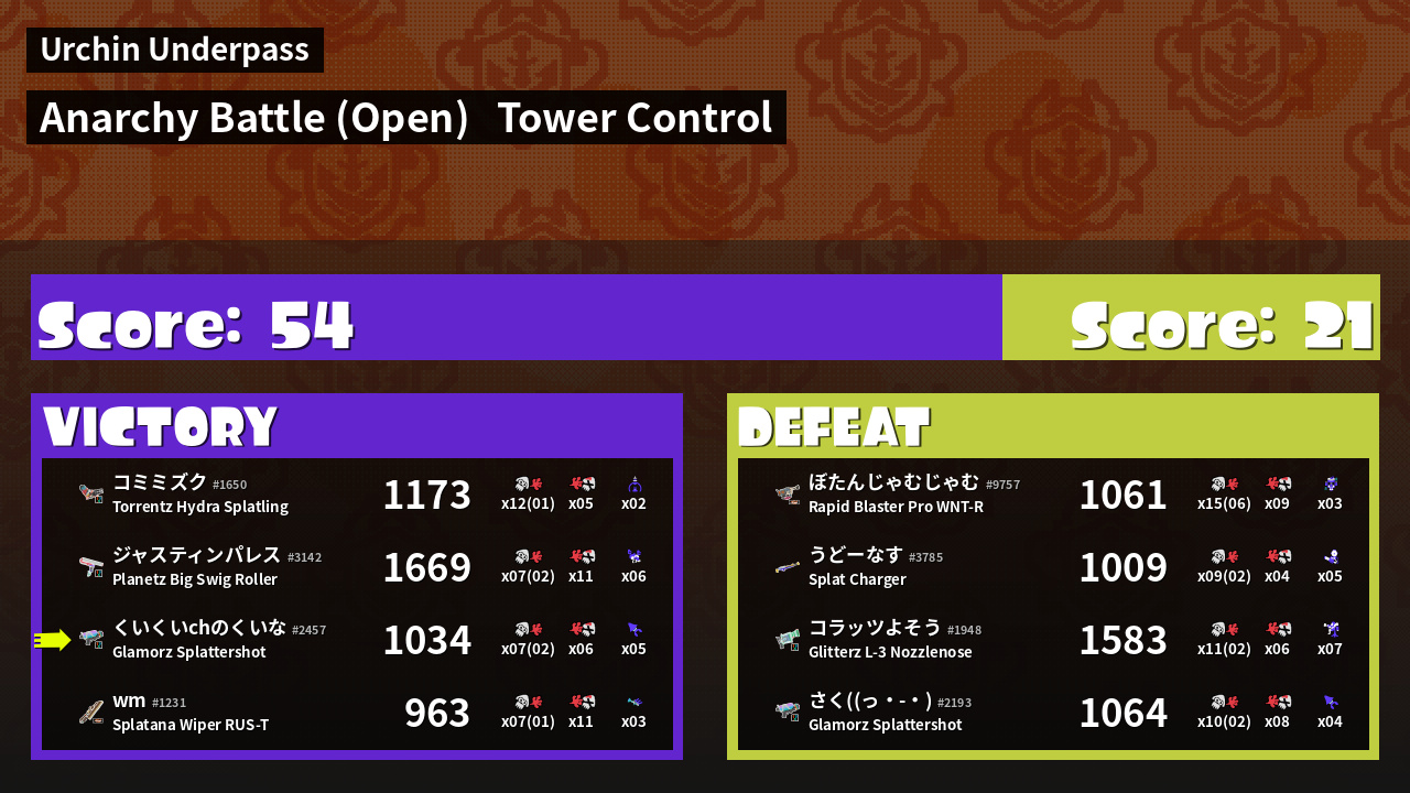 | Medals | #1 Super Jump Spot #1 Splat Assister #1 Tower Stopper |