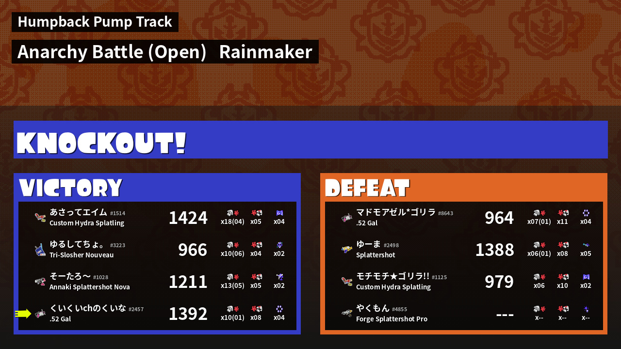 | Mode | Rainmaker - Anarchy Battle (Open) |