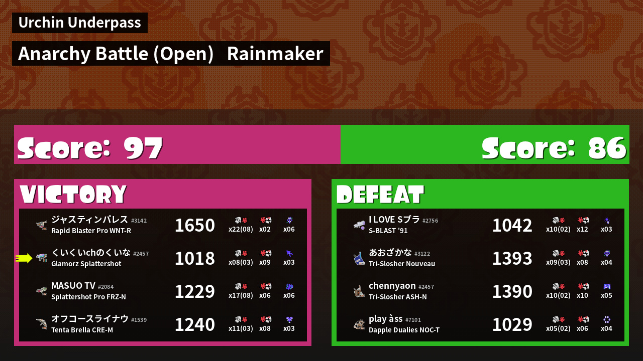 | Mode | Rainmaker - Anarchy Battle (Open) |