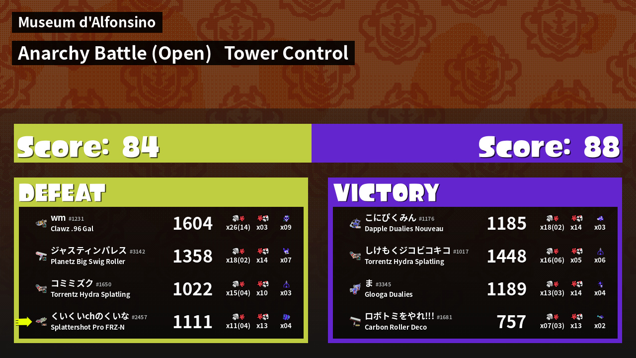 | Mode | Tower Control - Anarchy Battle (Open) |