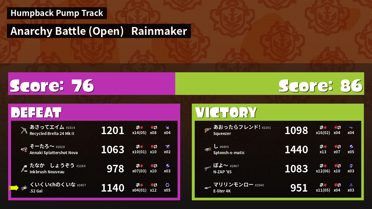 | Mode | Rainmaker - Anarchy Battle (Open) |