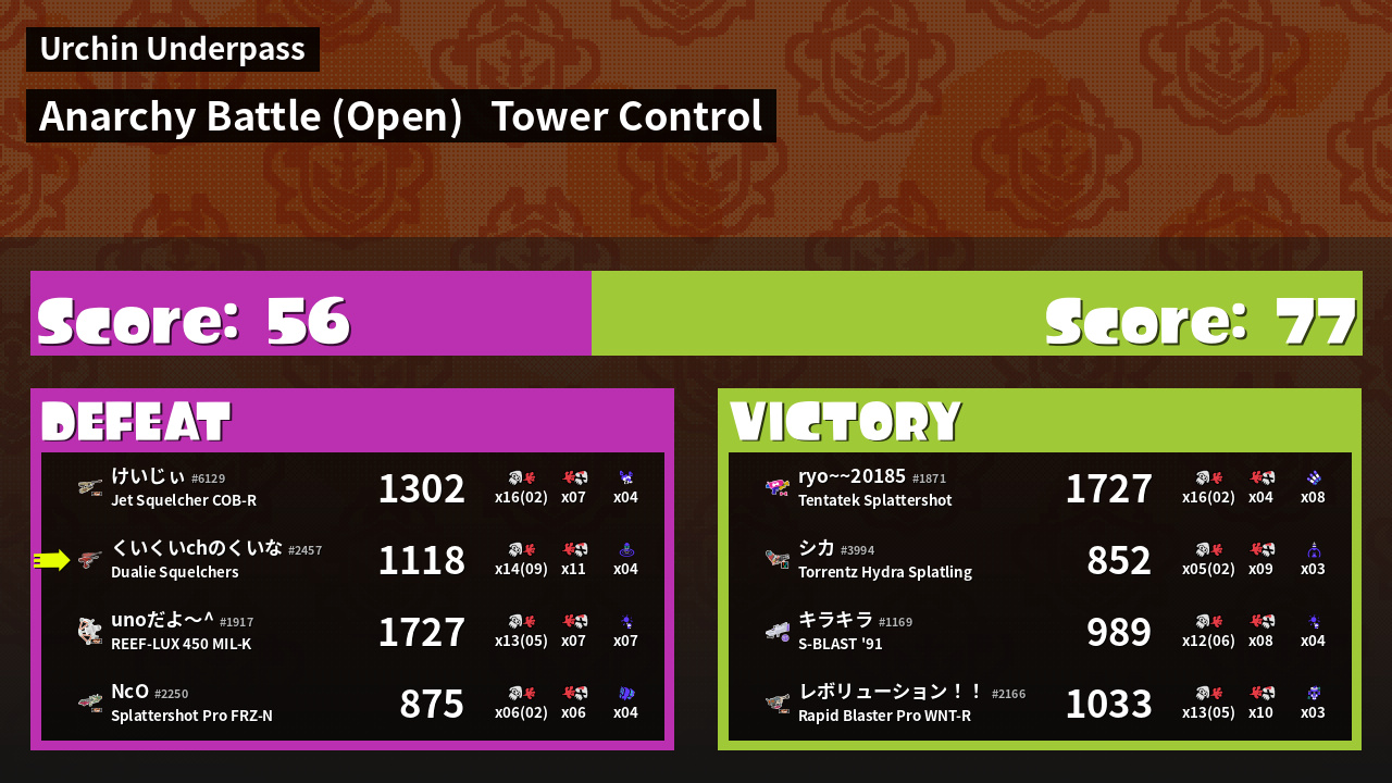 | Mode | Tower Control - Anarchy Battle (Open) |