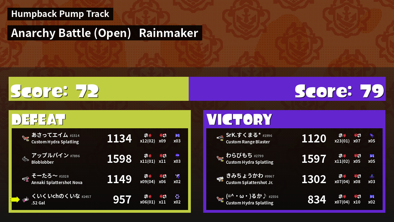 | Mode | Rainmaker - Anarchy Battle (Open) |