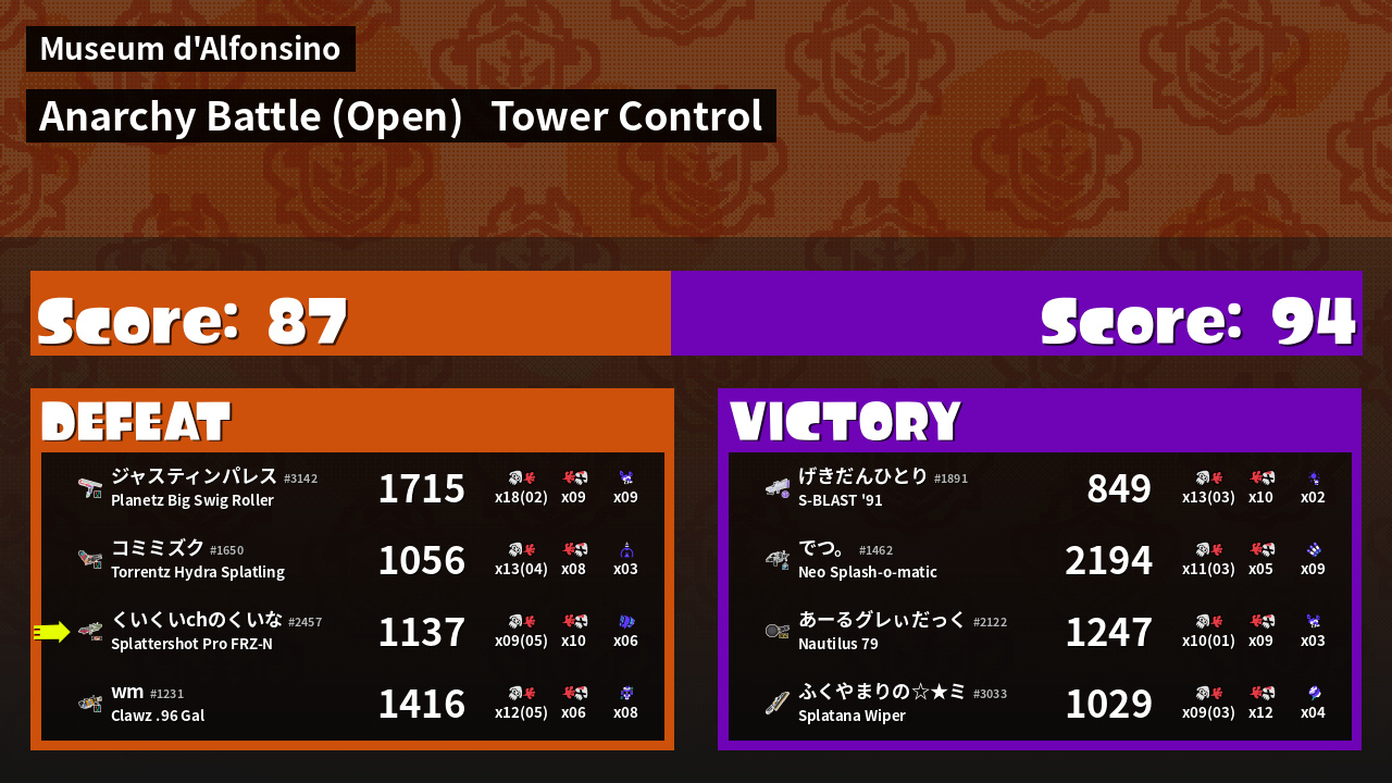 | Mode | Tower Control - Anarchy Battle (Open) |