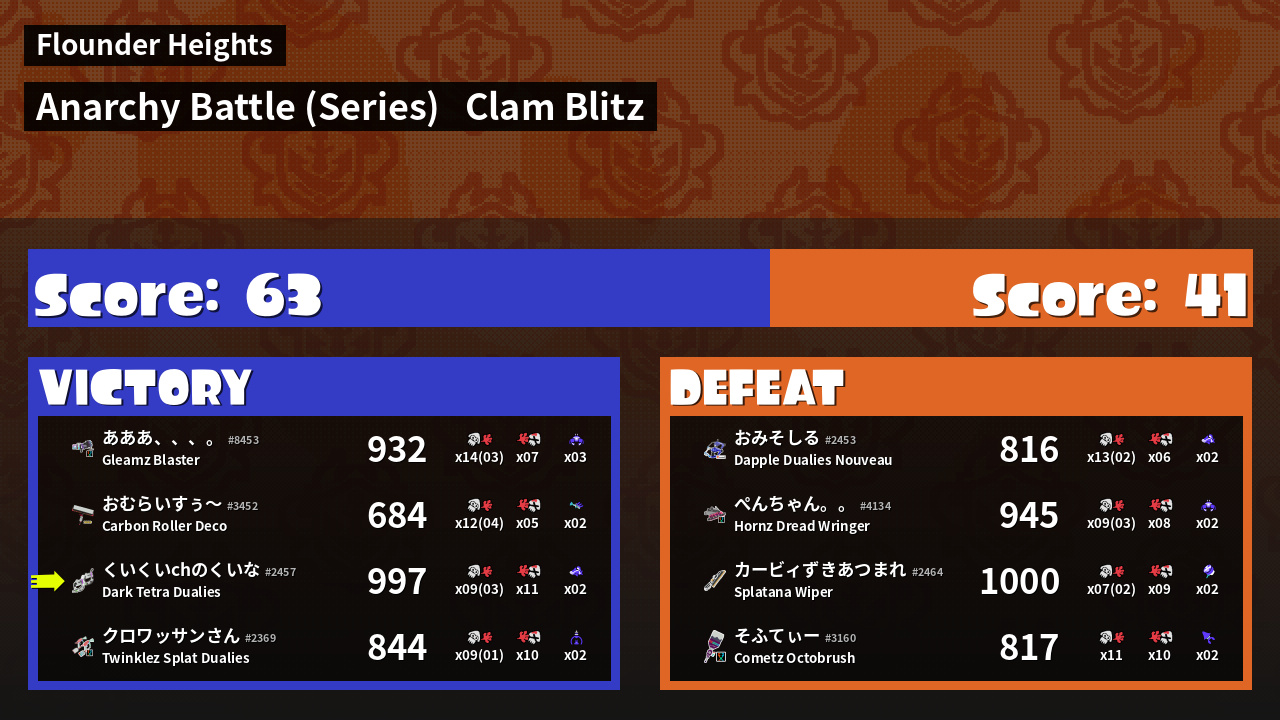| Mode | Clam Blitz - Anarchy Battle (Series) |