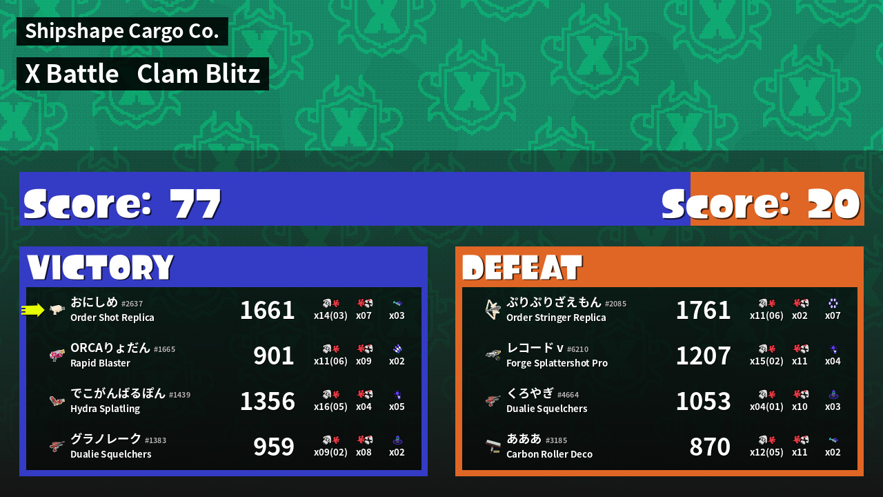 | Weapon | Order Shot Replica ( Suction Bomb / Trizooka) | ||
