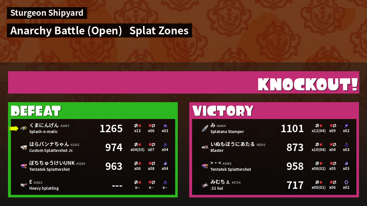 | Mode | Splat Zones - Anarchy Battle (Open) | ||