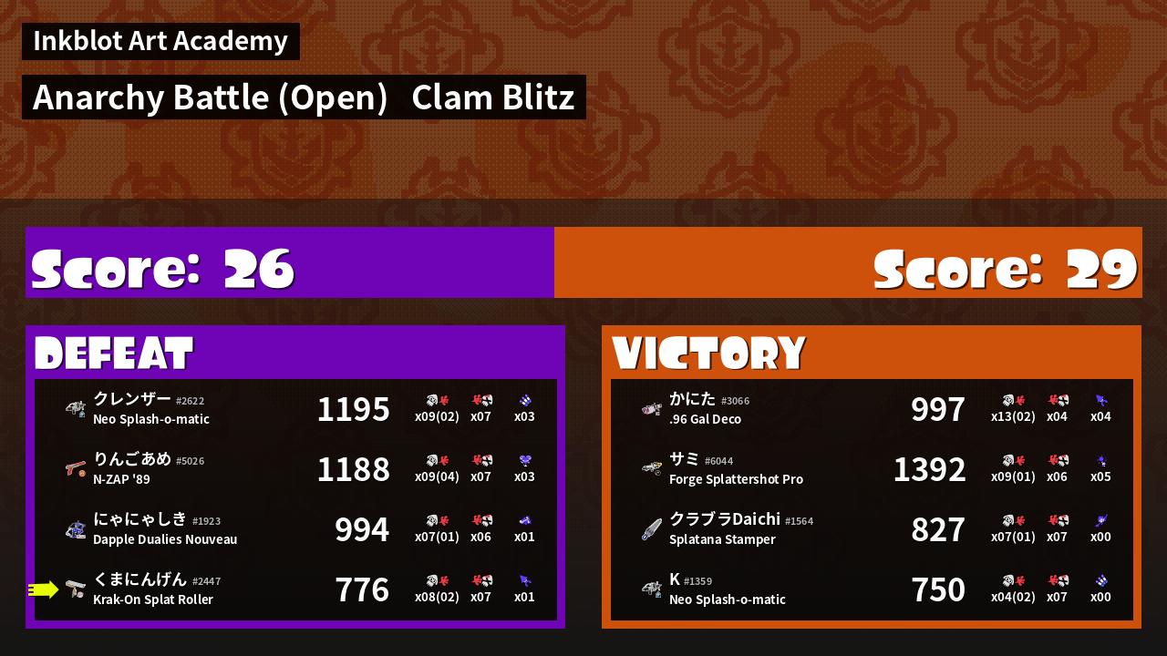| Mode | Clam Blitz - Anarchy Battle (Open) | ||