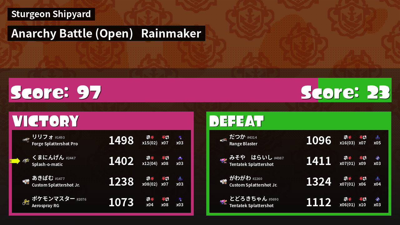 | Mode | Rainmaker - Anarchy Battle (Open) | ||