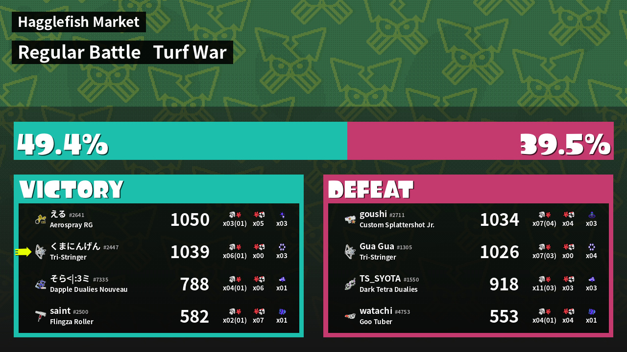 Results of 熊人間's Battle