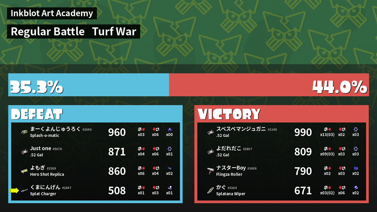 | Medals | #1 Enemy-Base Inker #1 Super Jump Spot #1 Damage Taker | ||
