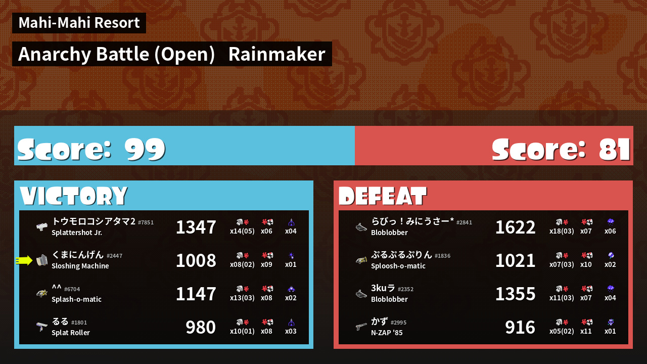 | Mode | Rainmaker - Anarchy Battle (Open) | ||