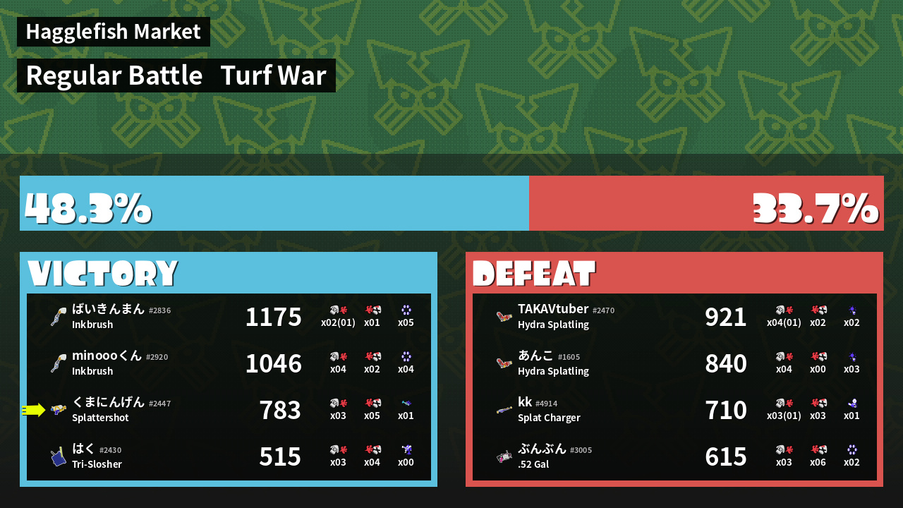 | Mode | Turf War - Regular Battle | ||
