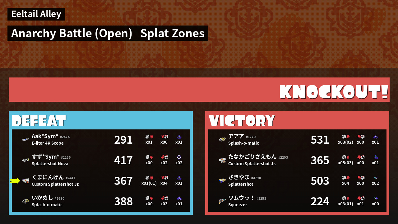| Mode | Splat Zones - Anarchy Battle (Open) | ||