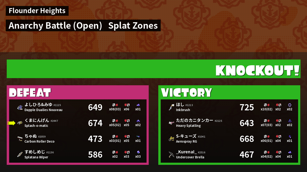 | Mode | Splat Zones - Anarchy Battle (Open) | ||