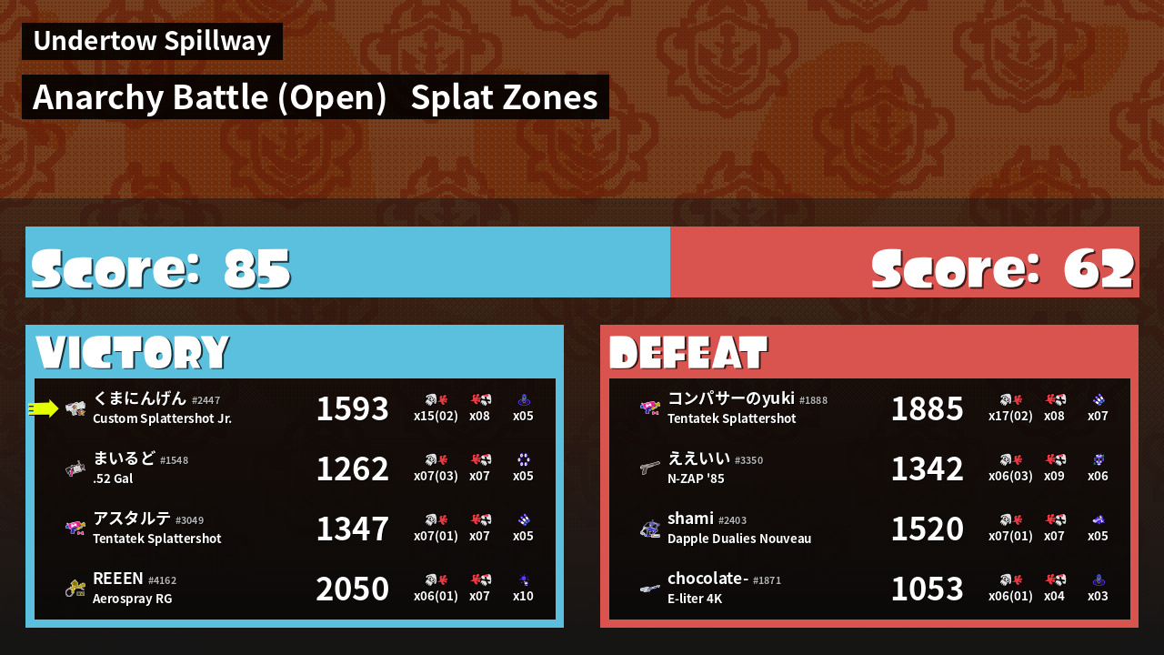 | Mode |  Splat Zones -  Anarchy Battle (Open) | ||