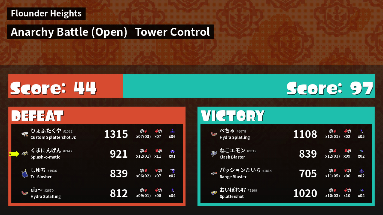 Results of 熊人間's Battle