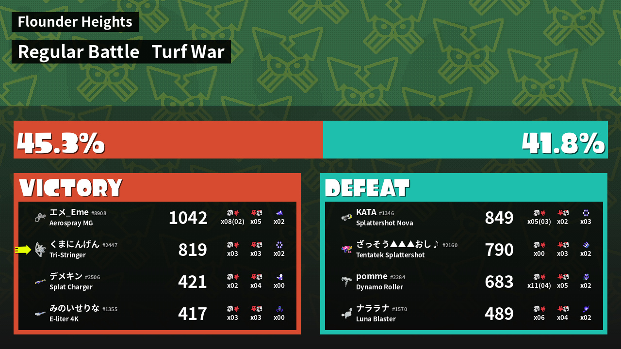 Results of 熊人間's Battle
