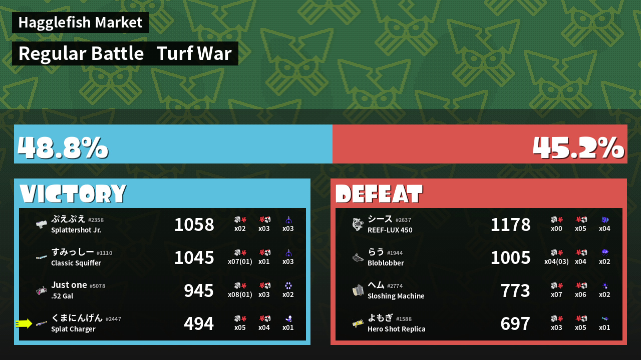 | Mode |    Turf War -   Regular Battle | ||