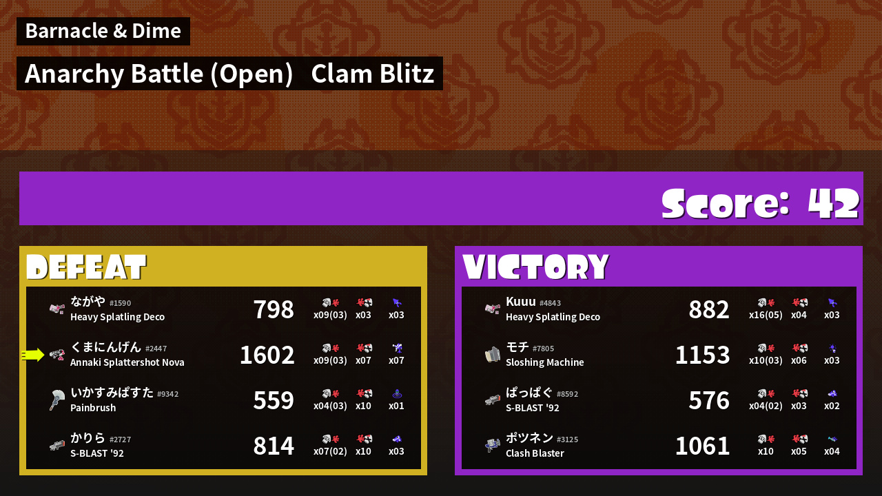 | Mode | Clam Blitz - Anarchy Battle (Open) | ||