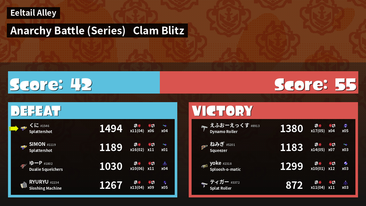 | Mode | Clam Blitz - Anarchy Battle (Series) | ||