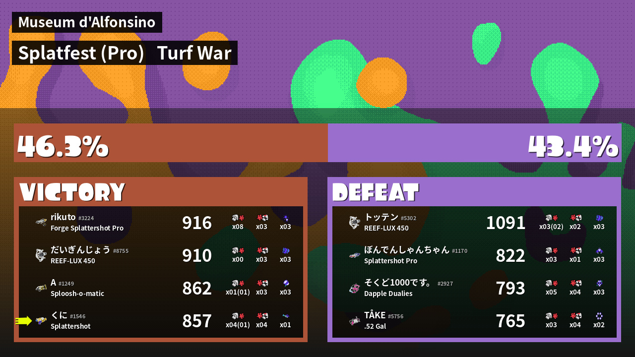 | Mode | Turf War - Splatfest (Pro) | ||
