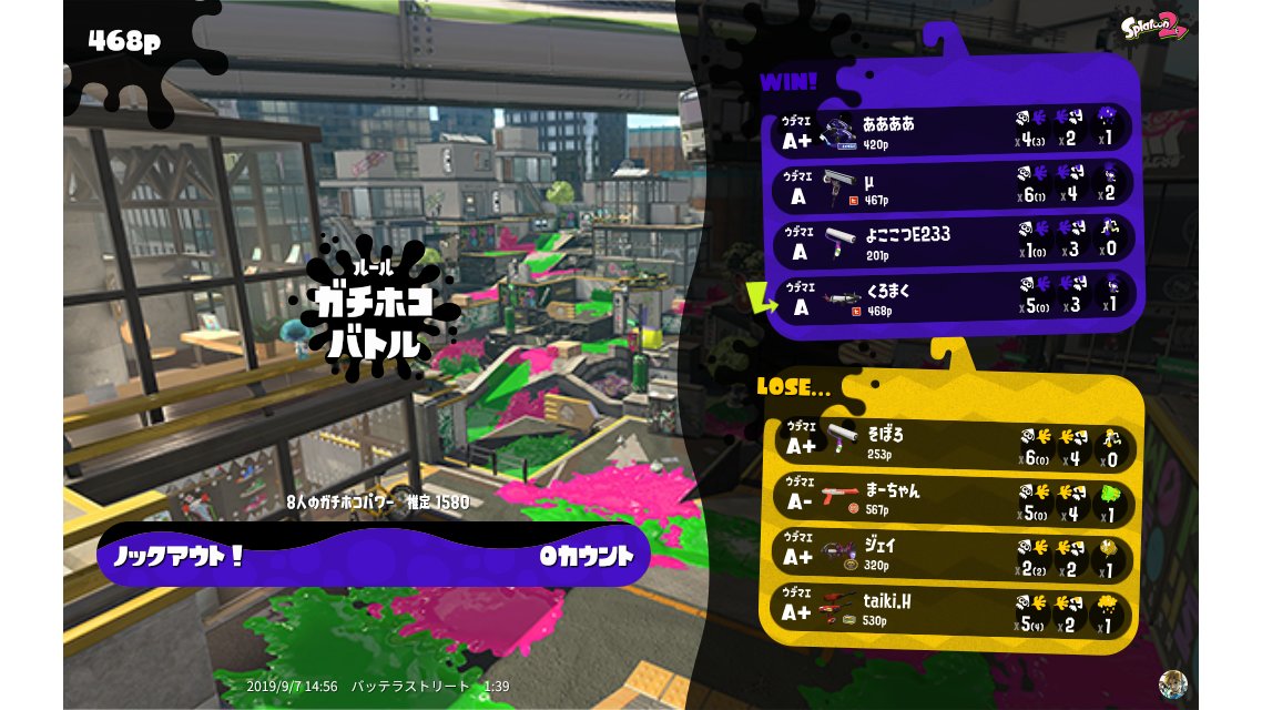 | Name | Weapon | Level | Rank | Inked | k+a/sp | k/d |