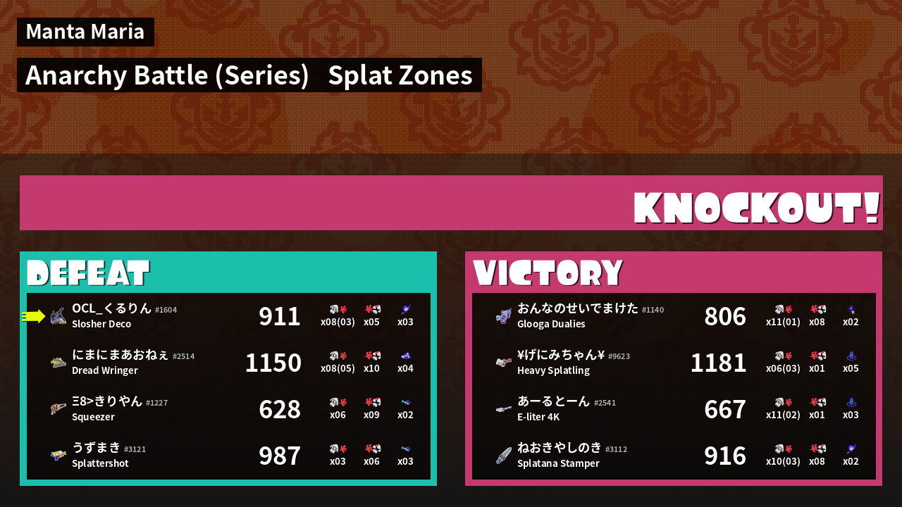 | Medals | #1 Overall Splatter #1 Splat Zone Inker #1 Splat Zone Guard | ||