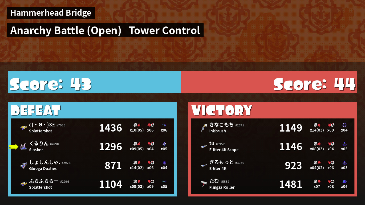 | Mode | Tower Control - Anarchy Battle (Open) | ||