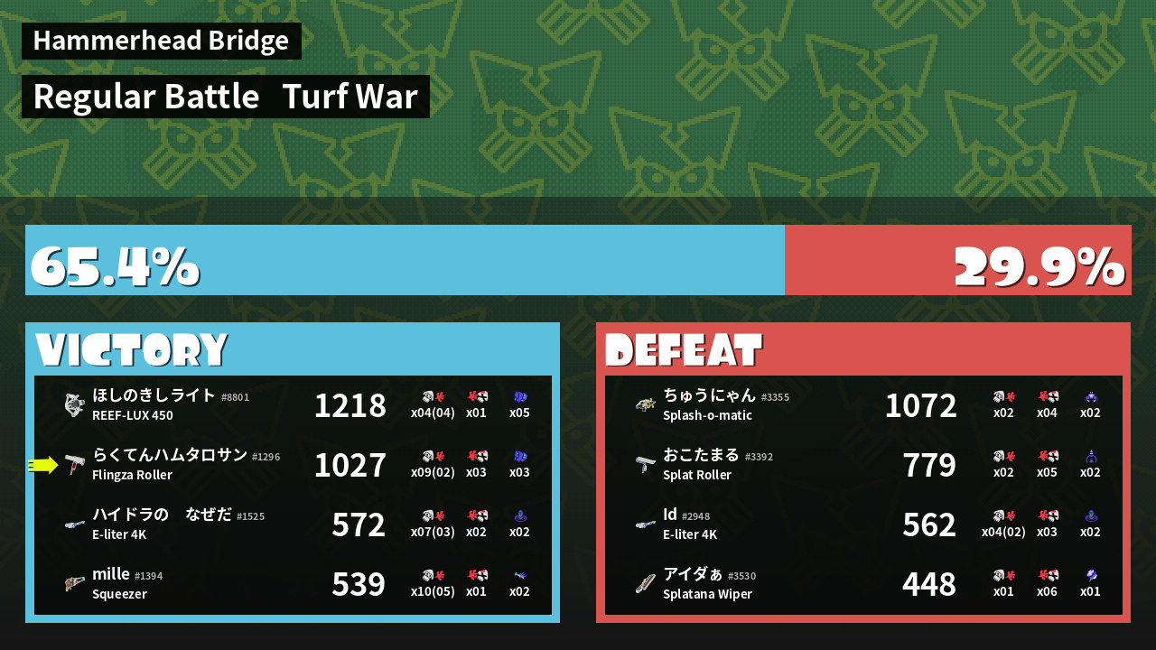 Results of らくてんハムタロサン's Battle