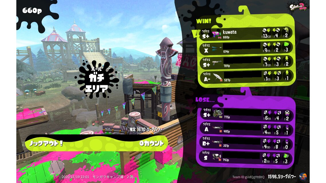 | Mode | Splat Zones - League Battle (Quad) | ||||||||||||||||||||||||||||||||||