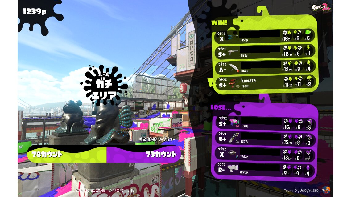 | Mode | Splat Zones - League Battle (Quad) | ||||||||||||||||||||||||||||||||||||||||