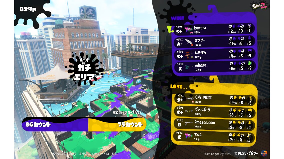 | Mode | Splat Zones - League Battle (Quad) | |||||||||||||||||||||||||||||||||||||||||||