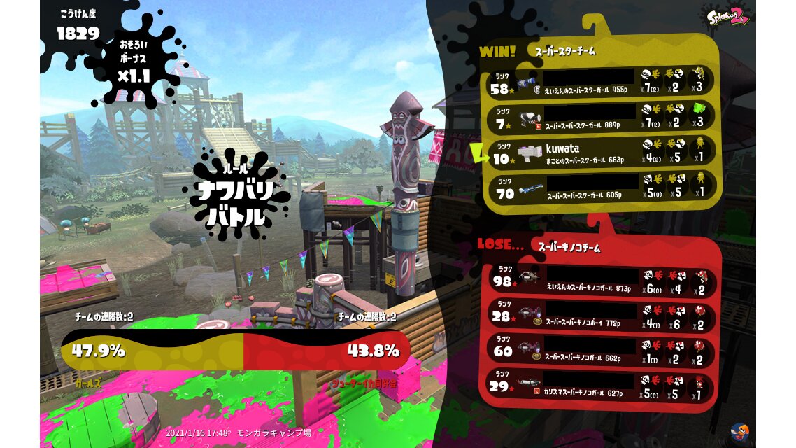 | Splatfest Title | スーパースター Fiend 217 → スーパースター Defender 66 | ||||||||||||||||||||||||||||