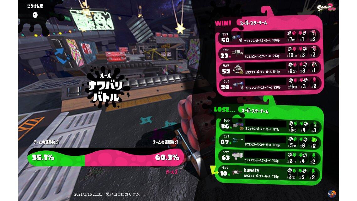 | Splatfest Title | スーパースター Champion 536 → スーパースター Champion 556 | ||||||||||||||||||||||||||||||||||