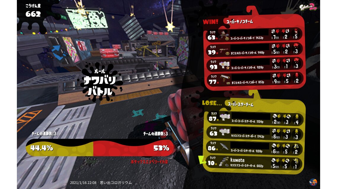 | Splatfest Title | スーパースター Champion 934 → スーパースター Champion 954 | |||||||||||||||||||||||||||||||||||||