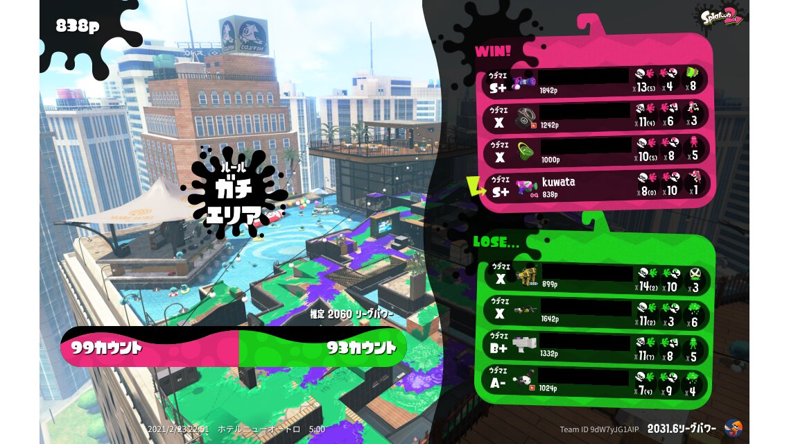 | Mode | Splat Zones - League Battle (Twin) | ||||||||||||||||||||||||||||||||||||||||