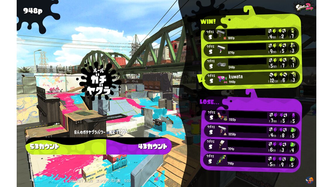 | Name | Weapon | Level | Rank | Inked | k+a/sp | k/d |