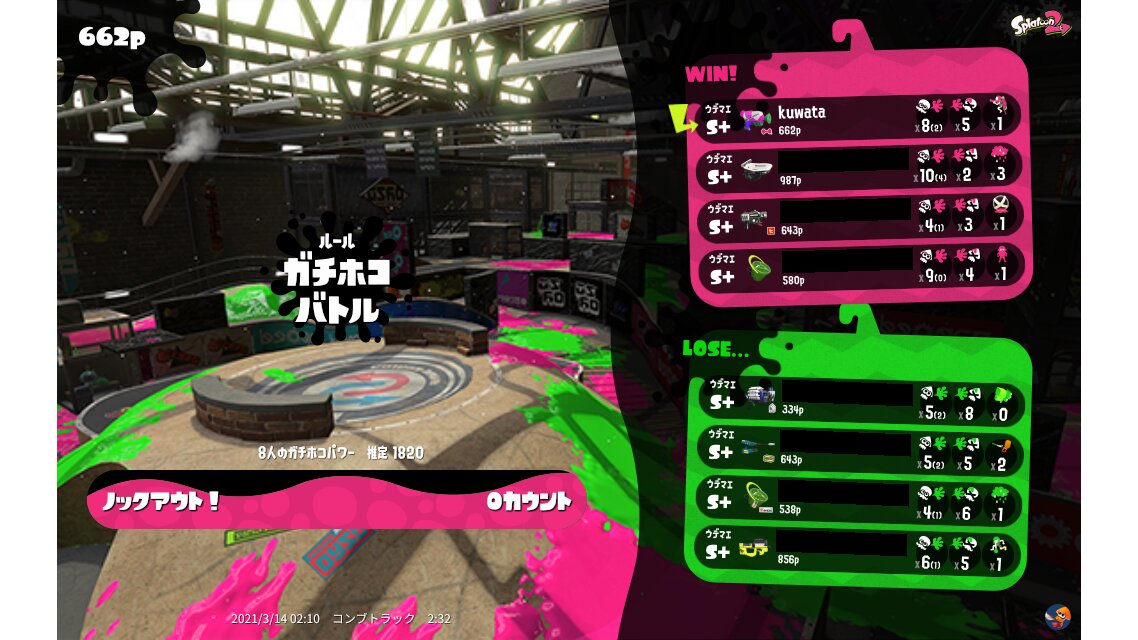 | Name | Weapon | Level | Rank | Inked | k+a/sp | k/d |