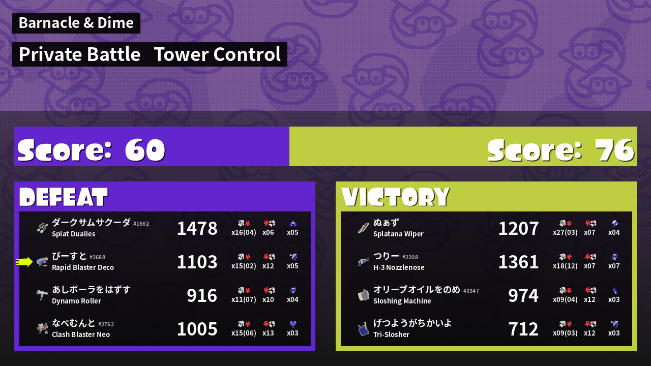 | Mode | Tower Control - Private Battle | ||