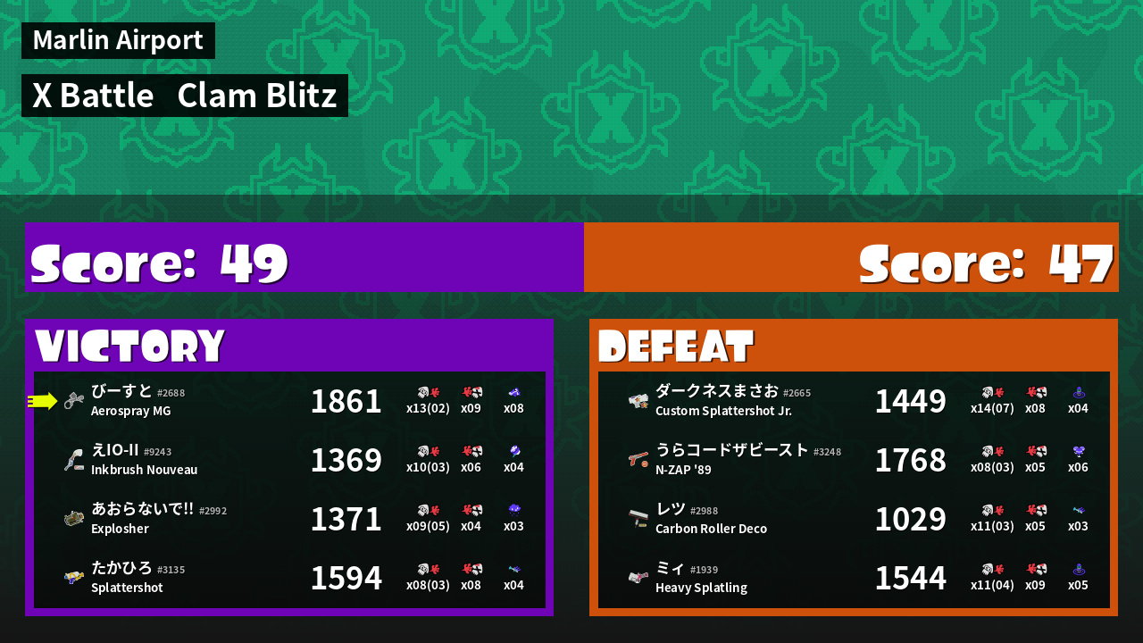 | Medals | #1 Overall Splatter #1 Turf Inker #1 Popular Target | ||