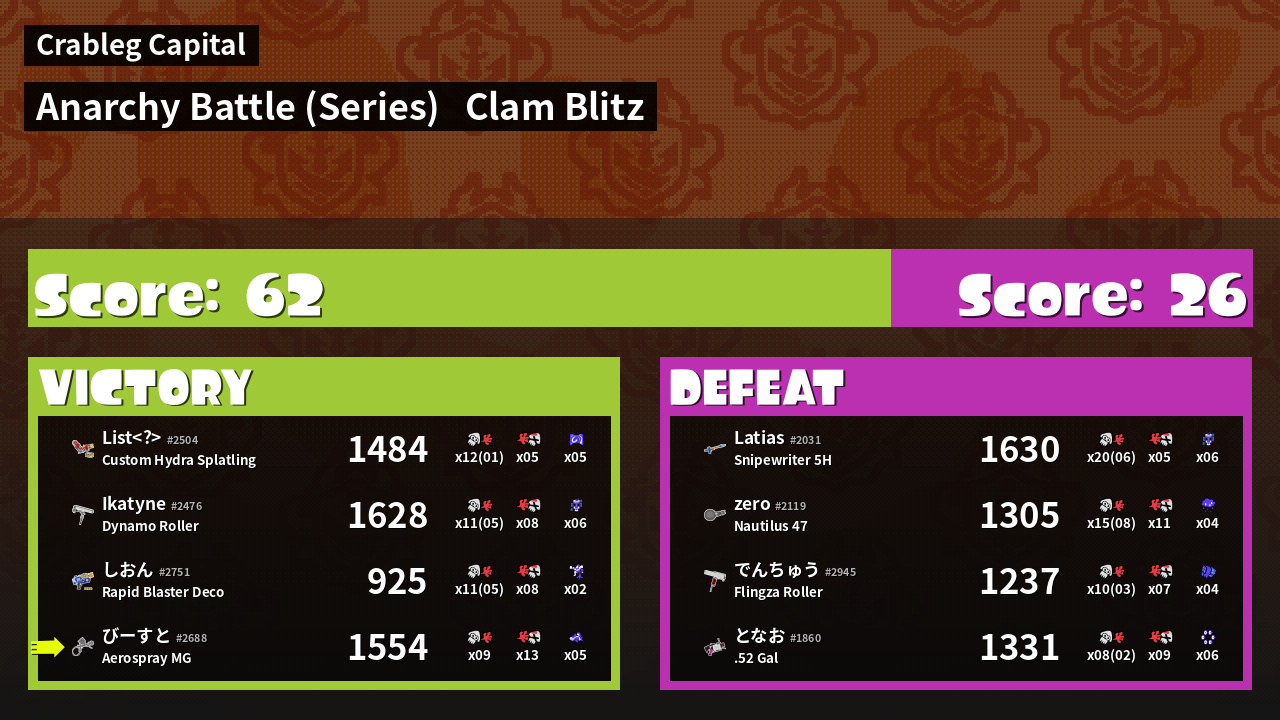 | Mode | Clam Blitz - Anarchy Battle (Series) | ||