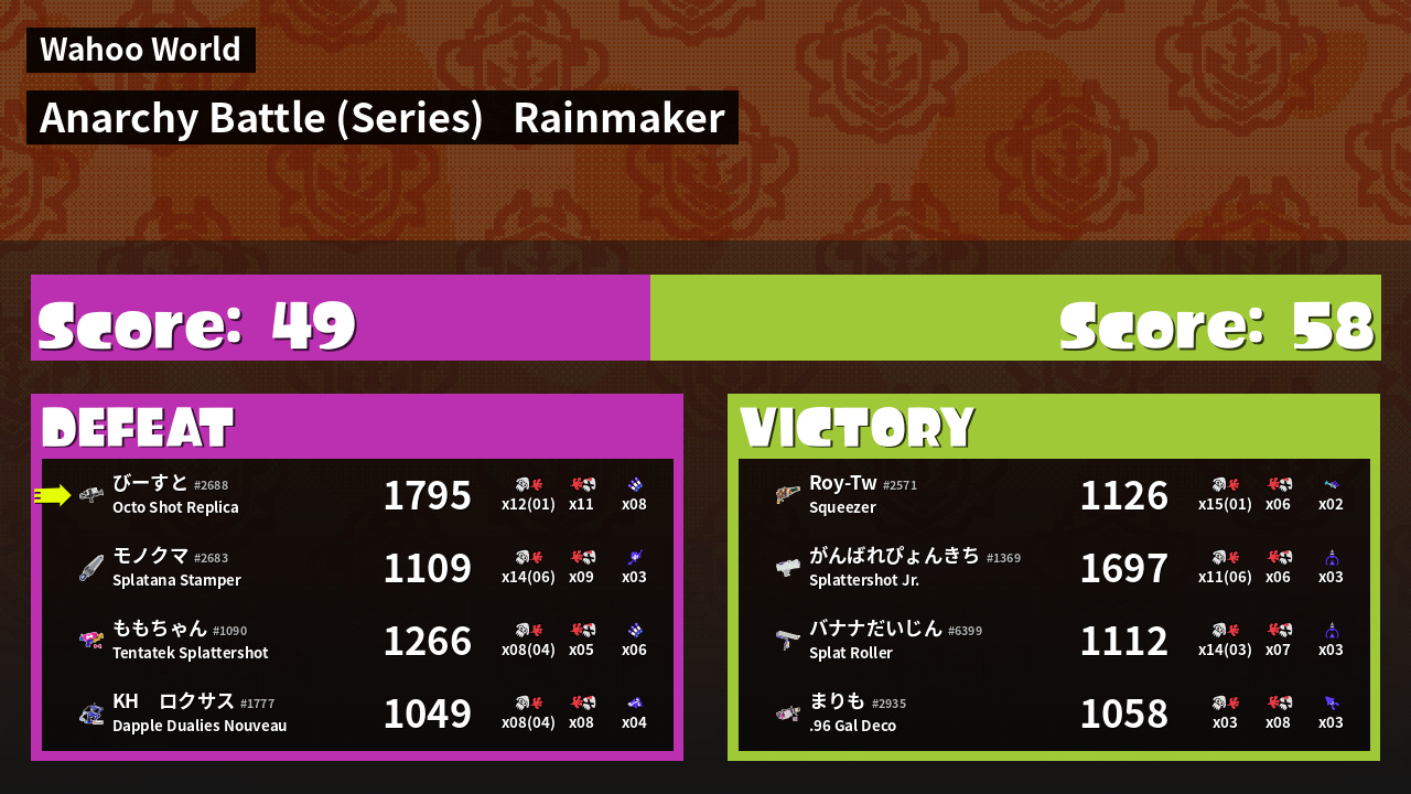 | Mode | Rainmaker - Anarchy Battle (Series) | ||