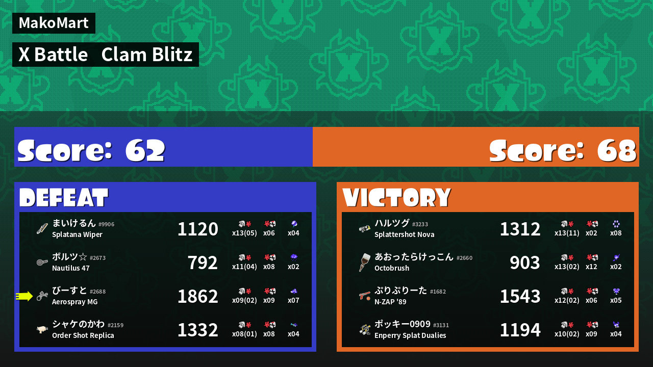 | Weapon | Aerospray MG ( Fizzy Bomb / Reefslider) | ||