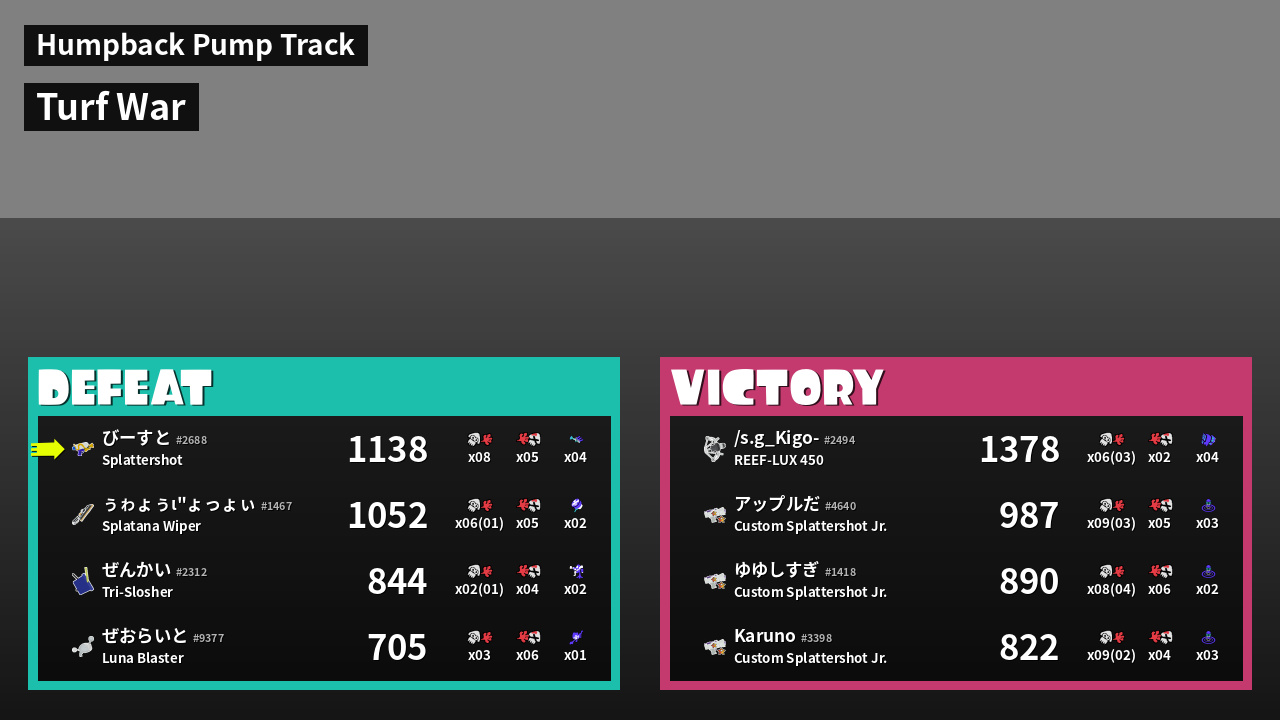| Mode | Turf War - ? | ||