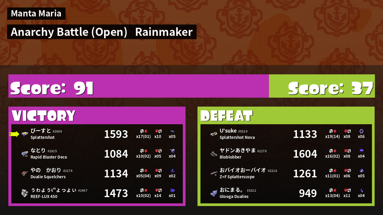 | Mode | Rainmaker - Anarchy Battle (Open) | ||