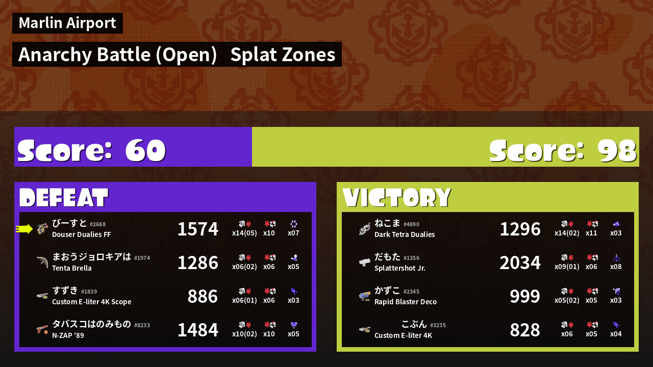 | Mode | Splat Zones - Anarchy Battle (Open) | ||